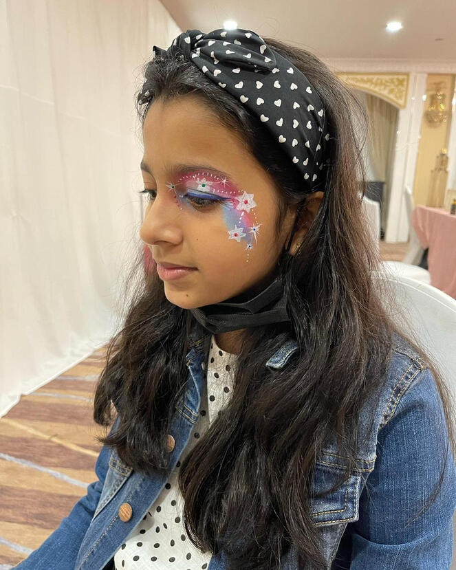 Our glitter designs are perfect for making your female guests feel special with a shiny and vibrant look. We use high-quality, skin-safe glitter in a variety of colors to create stunning designs. Rest assured, our glitter is gentle on the skin, hypoallergenic, and won't cause any irritation or reactions.